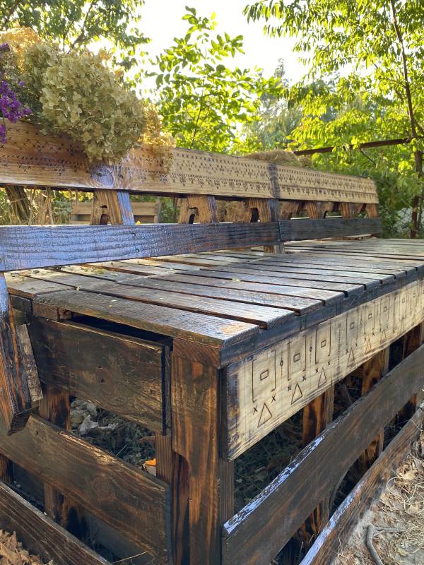 Компостер з палет (піддонів), двосекційний стандартний, в ЗДО «Казка», м. Боярка. Фото: Наталія Гаєцька